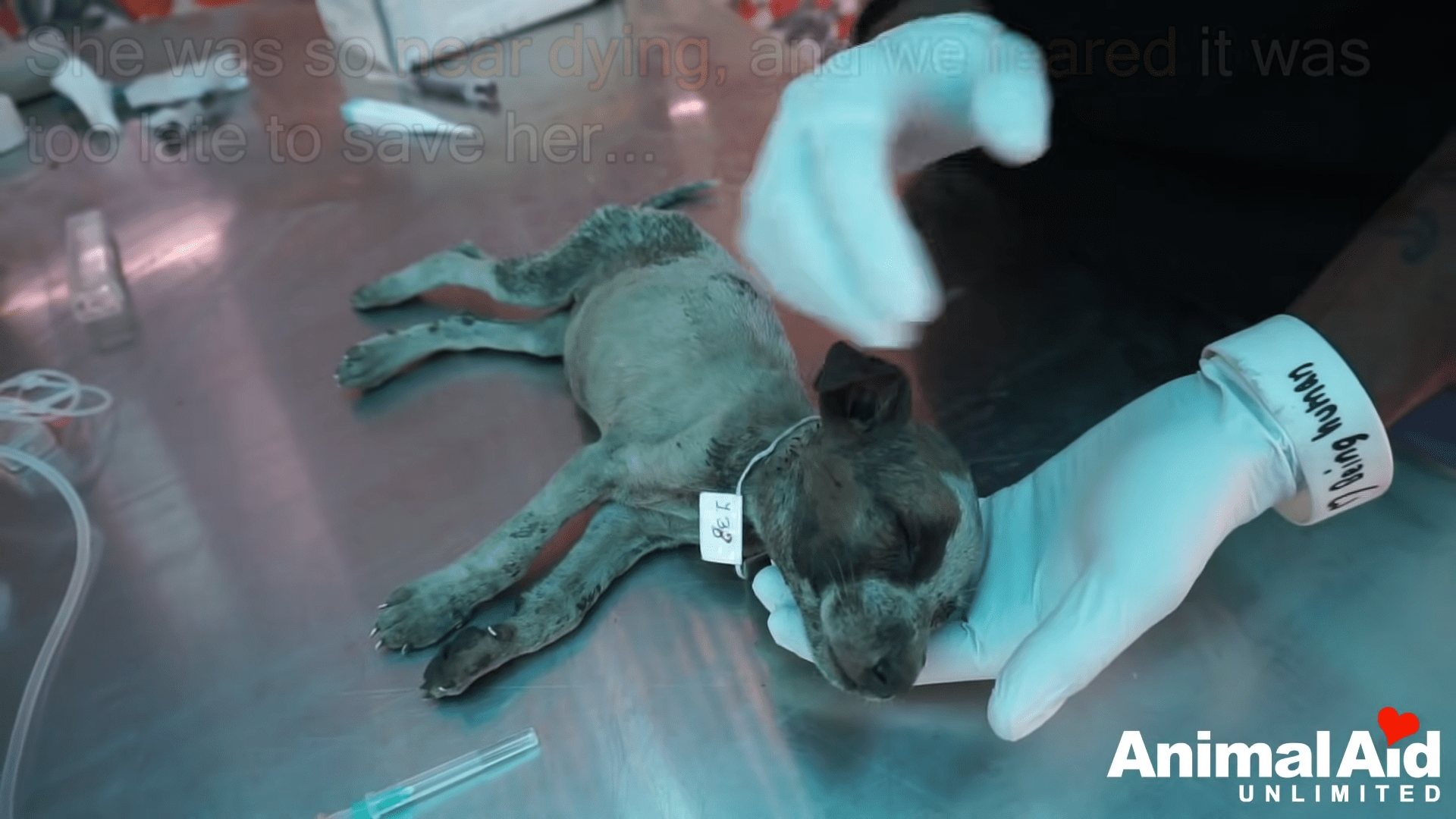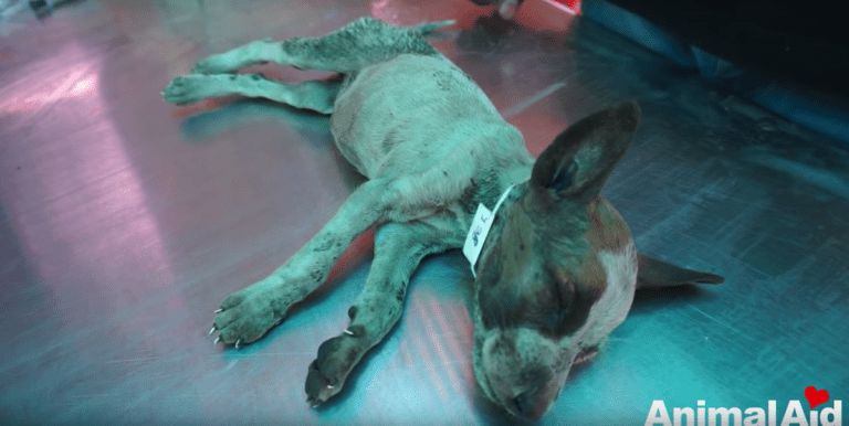Animal Aid Unlimited received a call about an unconscious pup on the verge of death. When they arrived at the scene, they saw a little dog lying next to a cardboard box, giving her last breaths. The rescuers were not sure if she would survive…